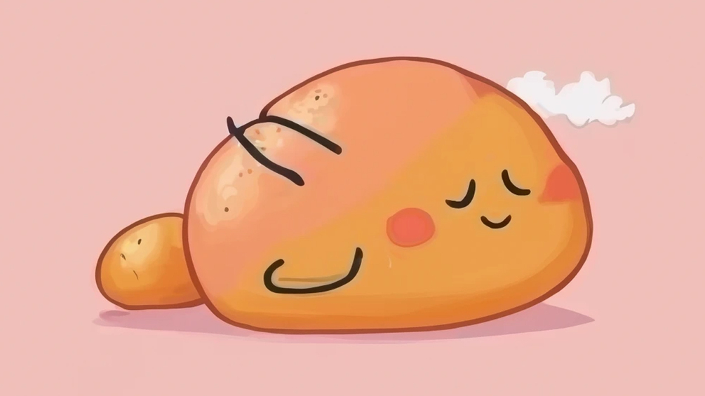 A cute wallpaper showing a sleeping potato baby lying in front of your face. How adorable!